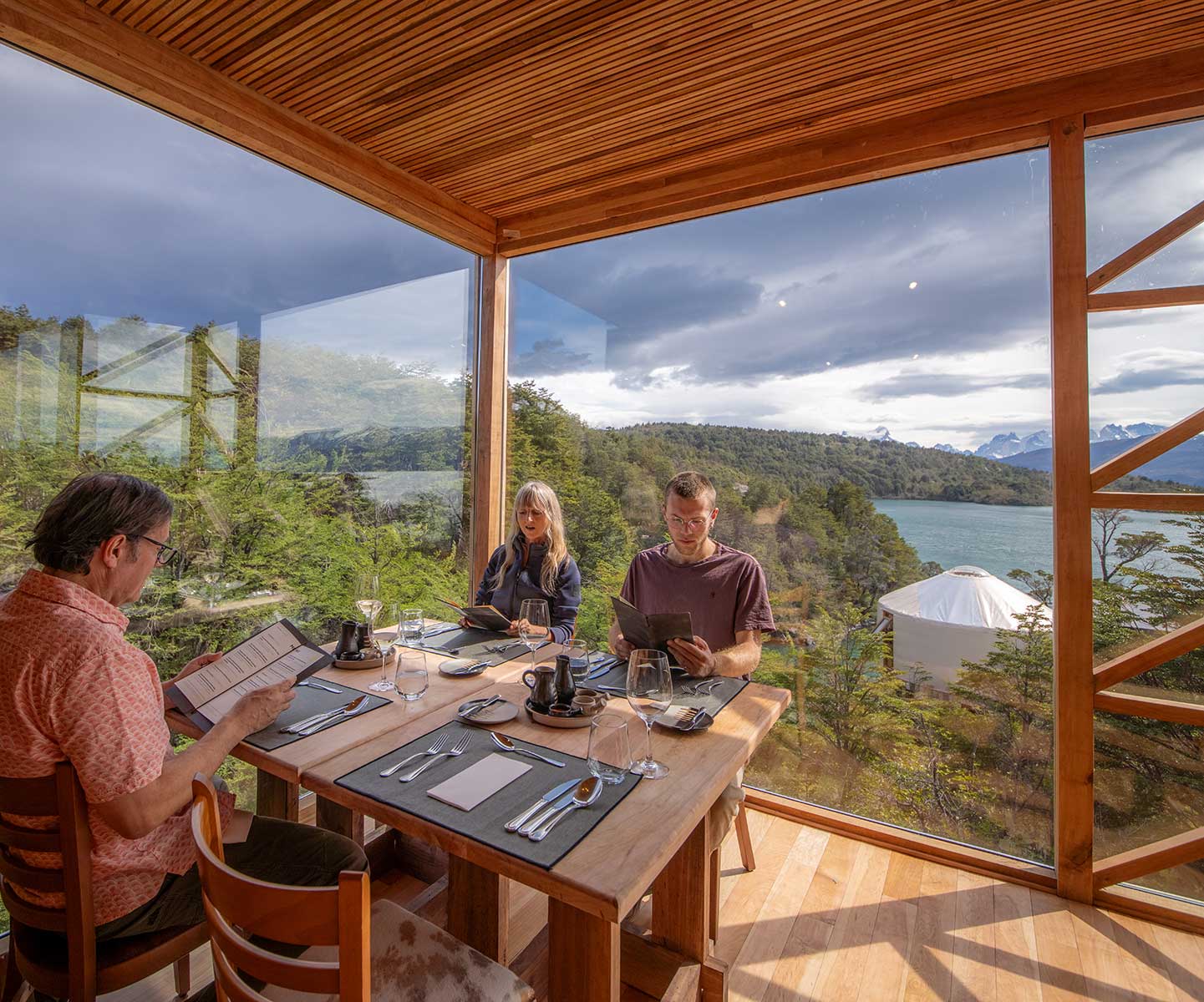 Imagine arriving after a day of adventure in Torres del Paine. The fresh air still vibrates in your lungs as you walk through the lounge of the Patagonia Camp restaurant. The first thing that greets you is not only the warmth of the place, but the unmistakable aroma of a cuisine that tastes of the territory. Each table, the view of the forest and the lake, are part of a welcoming that connects you with Patagonia in every way.